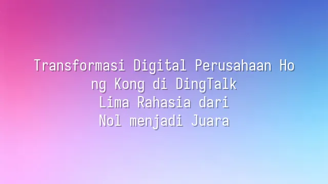 Transformasi Digital Perusahaan Hong Kong di DingTalk: Lima Rahasia dari Nol menjadi Juara