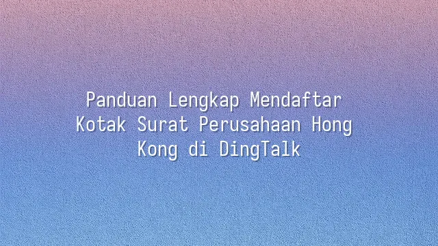 Panduan Lengkap Mendaftar Kotak Surat Perusahaan Hong Kong di DingTalk