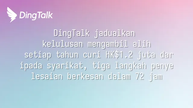 DingTalk jadualkan kelulusan mengambil alih: setiap tahun curi HK$1.2 juta daripada syarikat, tiga langkah penyelesaian berkesan dalam 72 jam