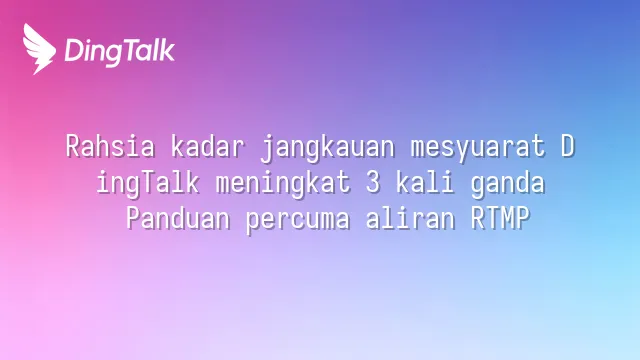 Rahsia kadar jangkauan mesyuarat DingTalk meningkat 3 kali ganda: Panduan percuma aliran RTMP