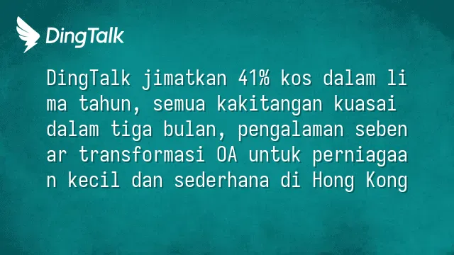 DingTalk jimatkan 41% kos dalam lima tahun, semua kakitangan kuasai dalam tiga bulan, pengalaman sebenar transformasi OA untuk perniagaan kecil dan sederhana di Hong Kong