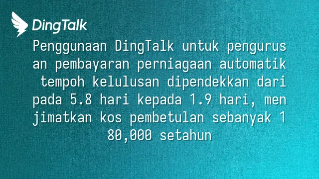 Penggunaan DingTalk untuk pengurusan pembayaran perniagaan automatik: tempoh kelulusan dipendekkan daripada 5.8 hari kepada 1.9 hari, menjimatkan kos pembetulan sebanyak 180,000 setahun