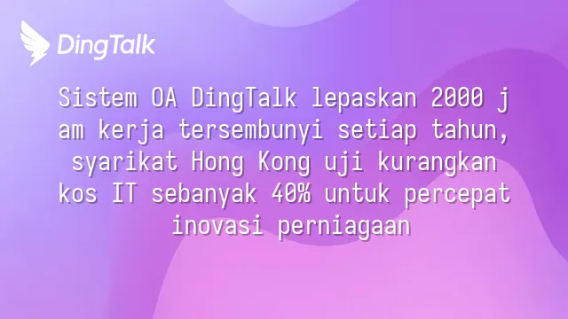 Sistem OA DingTalk lepaskan 2000 jam kerja tersembunyi setiap tahun, syarikat Hong Kong uji kurangkan kos IT sebanyak 40% untuk percepat inovasi perniagaan