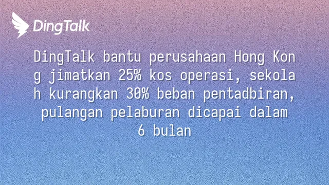 DingTalk bantu perusahaan Hong Kong jimatkan 25% kos operasi, sekolah kurangkan 30% beban pentadbiran, pulangan pelaburan dicapai dalam 6 bulan
