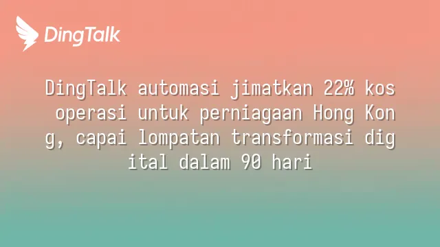 DingTalk automasi jimatkan 22% kos operasi untuk perniagaan Hong Kong, capai lompatan transformasi digital dalam 90 hari