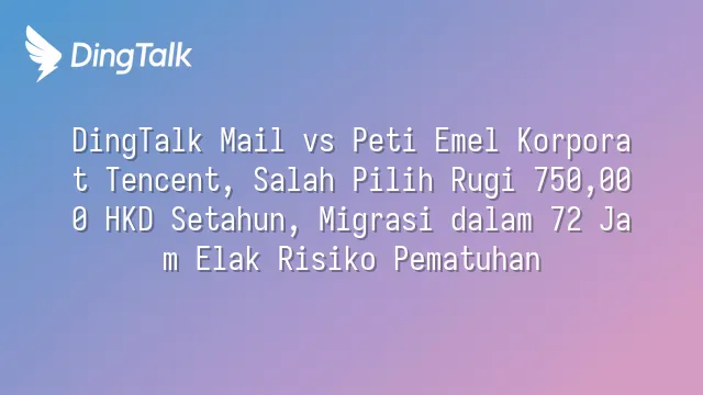 DingTalk Mail vs Peti Emel Korporat Tencent, Salah Pilih Rugi 750,000 HKD Setahun, Migrasi dalam 72 Jam Elak Risiko Pematuhan