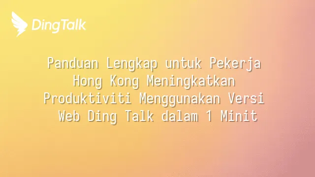 Panduan Lengkap untuk Pekerja Hong Kong Meningkatkan Produktiviti Menggunakan Versi Web Ding Talk dalam 1 Minit