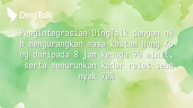 Pengintegrasian DingTalk dengan n8n mengurangkan masa kastam Hong Kong daripada 8 jam kepada 90 minit, serta menurunkan kadar ralat sebanyak 70%