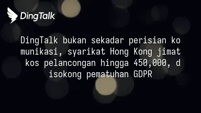 DingTalk bukan sekadar perisian komunikasi, syarikat Hong Kong jimat kos pelancongan hingga 450,000, disokong pematuhan GDPR