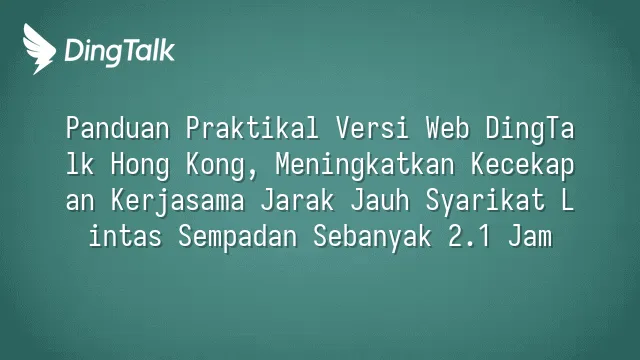 Panduan Praktikal Versi Web DingTalk Hong Kong, Meningkatkan Kecekapan Kerjasama Jarak Jauh Syarikat Lintas Sempadan Sebanyak 2.1 Jam