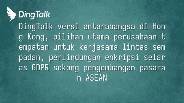 DingTalk versi antarabangsa di Hong Kong, pilihan utama perusahaan tempatan untuk kerjasama lintas sempadan, perlindungan enkripsi selaras GDPR sokong pengembangan pasaran ASEAN