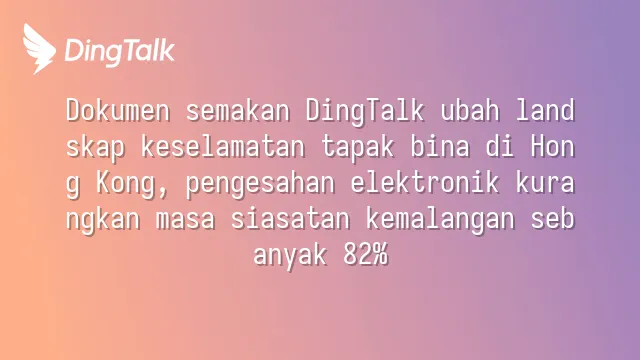 Dokumen semakan DingTalk ubah landskap keselamatan tapak bina di Hong Kong, pengesahan elektronik kurangkan masa siasatan kemalangan sebanyak 82%