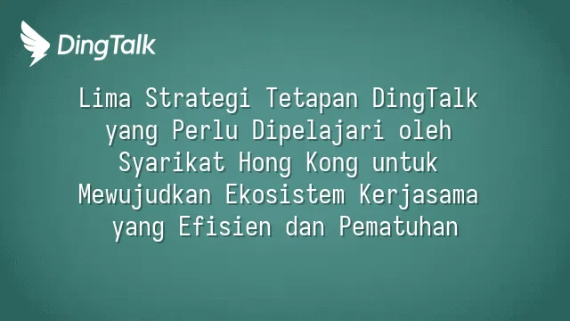 Lima Strategi Tetapan DingTalk yang Perlu Dipelajari oleh Syarikat Hong Kong untuk Mewujudkan Ekosistem Kerjasama yang Efisien dan Pematuhan