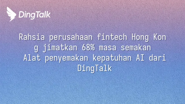 Rahsia perusahaan fintech Hong Kong jimatkan 68% masa semakan: Alat penyemakan kepatuhan AI dari DingTalk