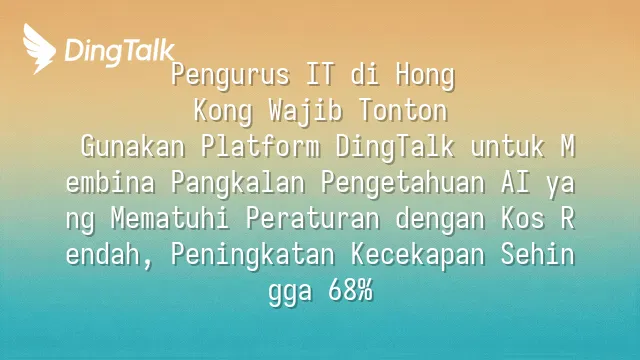 Pengurus IT di Hong Kong Wajib Tonton: Gunakan Platform DingTalk untuk Membina Pangkalan Pengetahuan AI yang Mematuhi Peraturan dengan Kos Rendah, Peningkatan Kecekapan Sehingga 68%