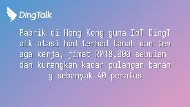 Pabrik di Hong Kong guna IoT DingTalk atasi had terhad tanah dan tenaga kerja, jimat RM18,000 sebulan dan kurangkan kadar pulangan barang sebanyak 40 peratus