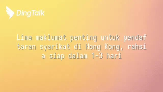 Lima maklumat penting untuk pendaftaran syarikat di Hong Kong, rahsia siap dalam 1-3 hari