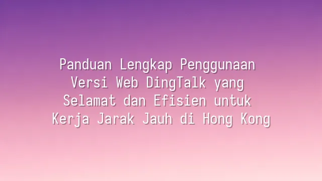 Panduan Lengkap Penggunaan Versi Web DingTalk yang Selamat dan Efisien untuk Kerja Jarak Jauh di Hong Kong