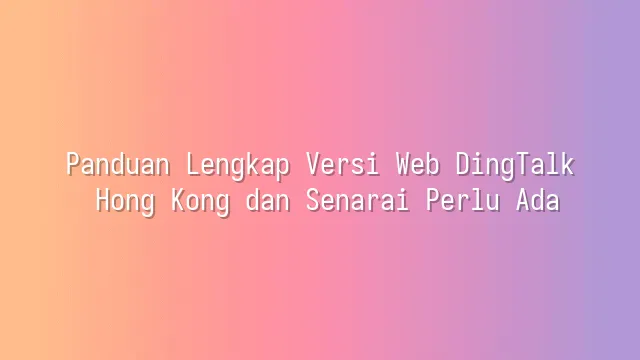 Panduan Lengkap Versi Web DingTalk Hong Kong dan Senarai Perlu Ada