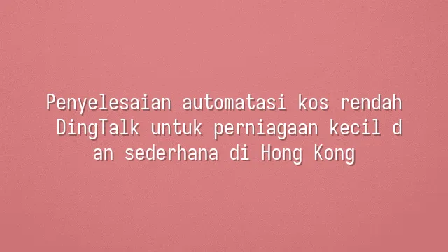 Penyelesaian automatasi kos rendah DingTalk untuk perniagaan kecil dan sederhana di Hong Kong