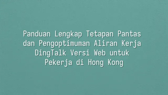 Panduan Lengkap Tetapan Pantas dan Pengoptimuman Aliran Kerja DingTalk Versi Web untuk Pekerja di Hong Kong