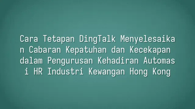 Di industri kewangan Hong Kong yang berkelajuan tinggi, konfigurasi DingTalk untuk kehadiran automatik HR sedang mengubah cara pengurusan tenaga kerja. Dari pengenalan biometrik hingga integrasi API, lihat bagaimana sistem in...