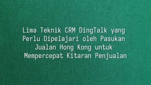 Lima Teknik CRM DingTalk yang Perlu Dipelajari oleh Pasukan Jualan Hong Kong untuk Mempercepat Kitaran Penjualan