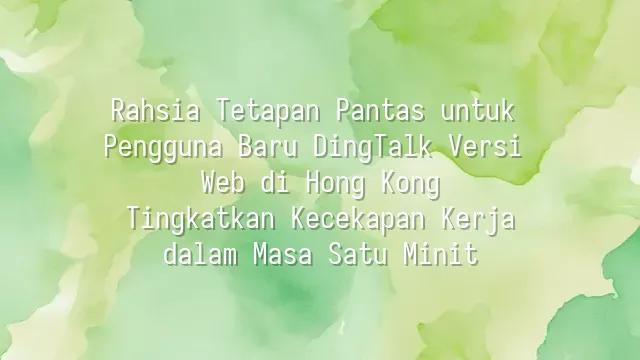 Panduan Komprehensif untuk Versi Web DingTalk Hong Kong