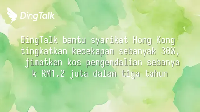 DingTalk bantu syarikat Hong Kong tingkatkan kecekapan sebanyak 30%, jimatkan kos pengendalian sebanyak RM1.2 juta dalam tiga tahun