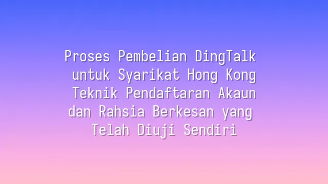 Proses Pembelian DingTalk untuk Syarikat Hong Kong: Teknik Pendaftaran Akaun dan Rahsia Berkesan yang Telah Diuji Sendiri