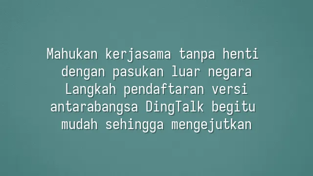 Mahukan kerjasama tanpa henti dengan pasukan antarabangsa? Langkah pendaftaran DingTalk versi antarabangsa sebenarnya sangat ringkas dan mengejutkan. Ikuti panduan lengkap dari asas hingga mahir ini, bantu anda berubah daripa...