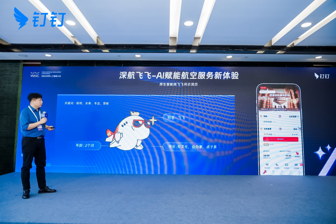 On July 28, at the "AI Doers" Dingling special session of the 2025 World Artificial Intelligence Conference, Shi Yanping, business lead for Shenzhen Airlines' sales platform, attended and delivered a speech. He shared insights on the development of Shenzhen Airlines’ customer-facing AI agent “Shenhang Feifei,” built on the Dingling AI platform, and demonstrated it live. The AI agent is scheduled to launch on Shenzhen Airlines’ official app in September.