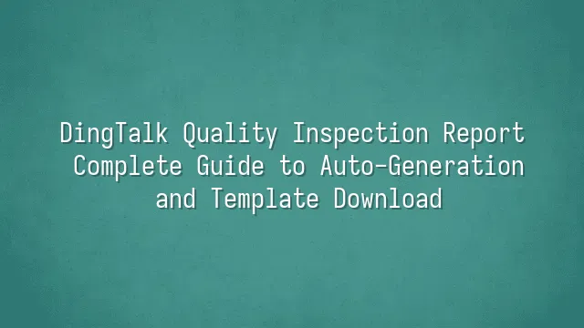 DingTalk Quality Inspection Report: Complete Guide to Auto-Generation and Template Download