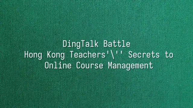 DingTalk Battle: Hong Kong Teachers' Secrets to Online Course Management