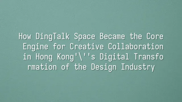 Hong Kong's design industry is undergoing a profound digital transformation, where DingTalk spaces for team creative collaboration have evolved beyond mere communication tools to become the core engine driving creative output...