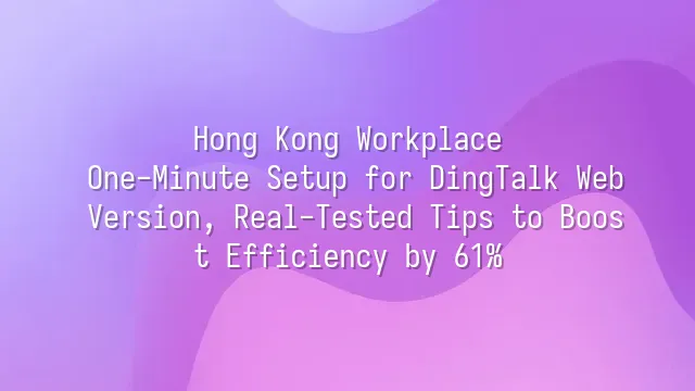 Hong Kong Workplace: One-Minute Setup for DingTalk Web Version, Real-Tested Tips to Boost Efficiency by 61%