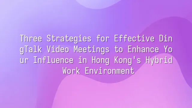 Three Strategies for Effective DingTalk Video Meetings to Enhance Your Influence in Hong Kong's Hybrid Work Environment