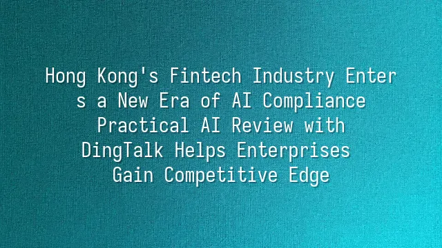 Hong Kong's Fintech Industry Enters a New Era of AI Compliance: Practical AI Review with DingTalk Helps Enterprises Gain Competitive Edge