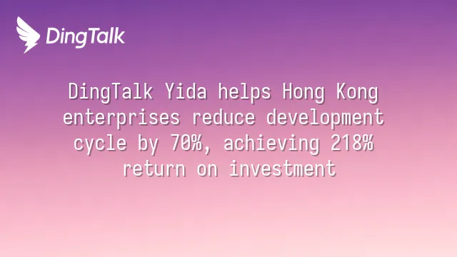DingTalk Yida helps Hong Kong enterprises reduce development cycle by 70%, achieving 218% return on investment