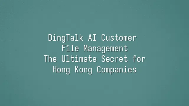 DingTalk AI Customer File Management: The Ultimate Secret for Hong Kong Companies