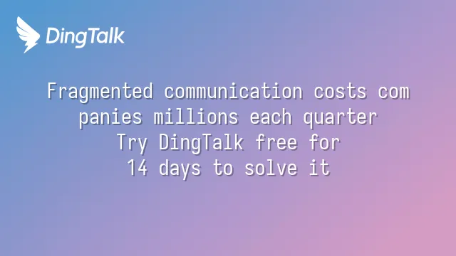 Fragmented communication costs companies millions each quarter? Try DingTalk free for 14 days to solve it