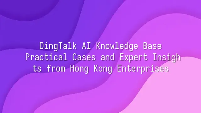 In this digital age, leveraging AI technology to enhance work efficiency has become a key focus for many businesses. This article explores how to use DingTalk's AI knowledge base, and through real-world cases from Hong Kong c...