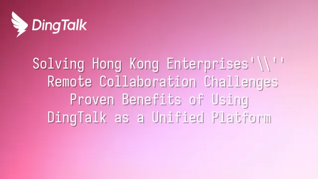 Solving Hong Kong Enterprises' Remote Collaboration Challenges: Proven Benefits of Using DingTalk as a Unified Platform
