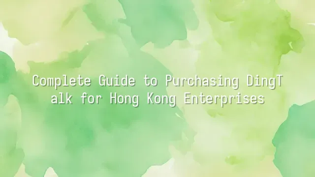 In the digital age, DingTalk has become the preferred office tool for many Hong Kong enterprises. This article provides a detailed guide on how Hong Kong businesses can smoothly purchase and use DingTalk, along with practical...