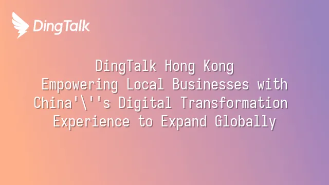 DingTalk Hong Kong: Empowering Local Businesses with China's Digital Transformation Experience to Expand Globally