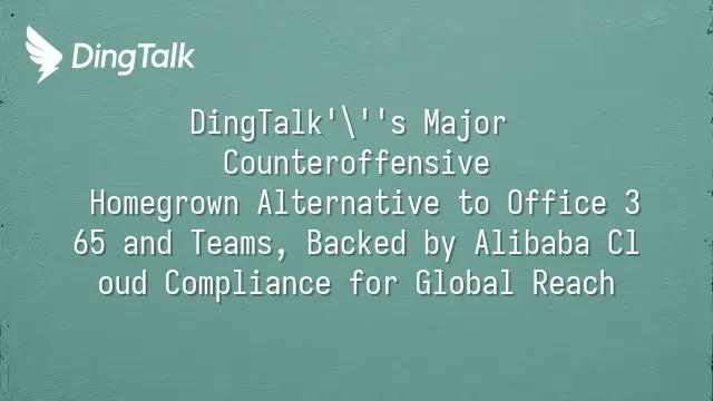 DingTalk's Major Counteroffensive: Homegrown Alternative to Office 365 and Teams, Backed by Alibaba Cloud Compliance for Global Reach