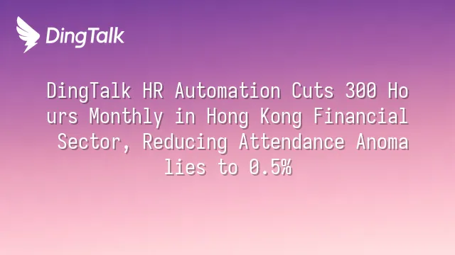 DingTalk HR Automation Cuts 300 Hours Monthly in Hong Kong Financial Sector, Reducing Attendance Anomalies to 0.5%
