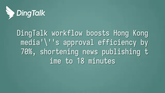 DingTalk workflow boosts Hong Kong media's approval efficiency by 70%, shortening news publishing time to 18 minutes