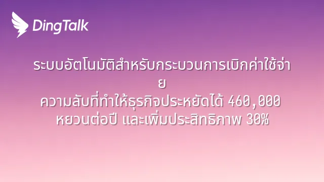 การขอรับเงินคืนด้วยกระดาษทำให้ประสิทธิภาพช้าและสิ้นเปลืองแรงงานหรือไม่? กระบวนการขอรับเงินคืนผ่าน DingTalk สามารถส่งแบบฟอร์มได้เพียงคลิกเดียว ช่วยให้ธุรกิจประหยัดต้นทุนทางการเงินโดยเฉลี่ยถึง 30% และยกระดับทุกขั้นตอนตั้งแต่การ...