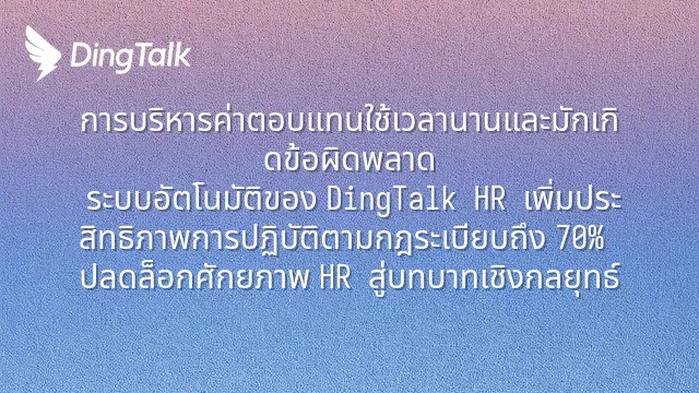 การบริหารค่าตอบแทนใช้เวลานานและมักเกิดข้อผิดพลาด? ระบบอัตโนมัติของ DingTalk HR เพิ่มประสิทธิภาพการปฏิบัติตามกฎระเบียบถึง 70% ปลดล็อกศักยภาพ HR สู่บทบาทเชิงกลยุทธ์